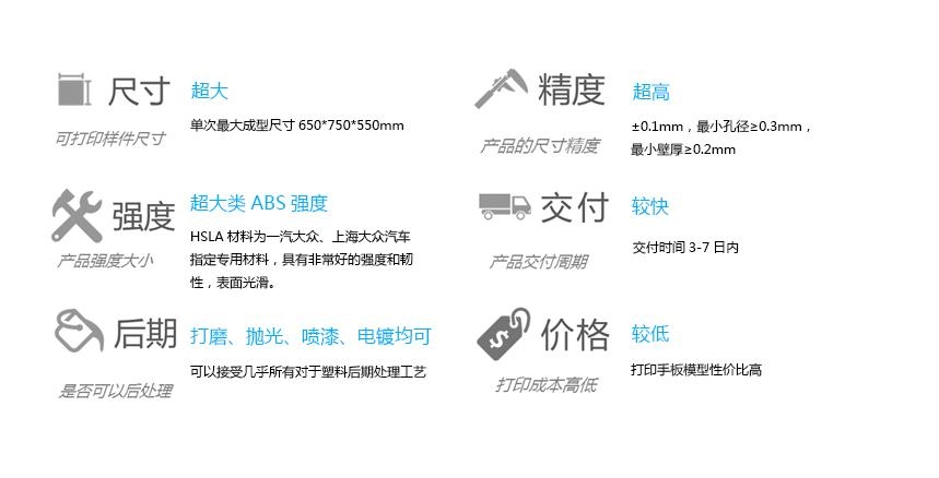 1.HSLA为美国3D Systems公司提供的最先进SLA技术,HSLA提供了最优秀的表面质量;