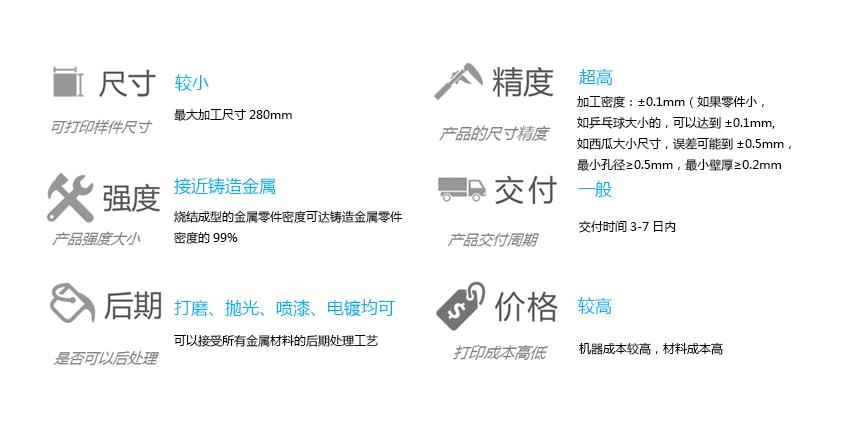 2.多种金属材料可选,常用材料包括钛合金、钴铬合金、不锈钢、铝合金、镍铬合金、铜等。